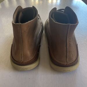 OLUKAI Nalukai Men’s Caramel Brown Leather Mid Top Boots Size 8.5 US in very good condition.