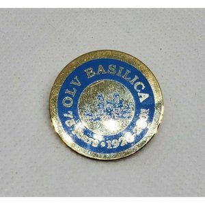 OLV Basilica 75 Years 1926-2001 Gold Blue Colored Lapel Hat Brooch Pin