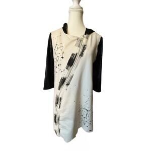Women’s black & white hooded zip dress S — NYC art-to-wear label with punk goth streetwear edge, bling embellished rhinestone jewels, bold artsy vibe #fallfashion #arttowear #punkgoth #streetstyle