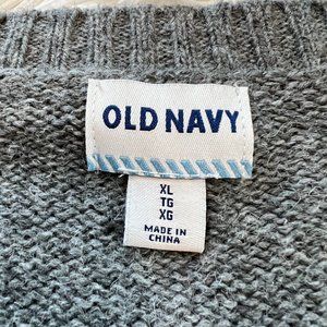 Old Navy Men Sweater Size XL Gray White Stripe Wool Blend Grandpa Pullover 15790
