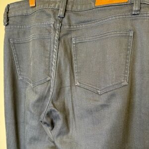 OM Objects Without Meaning Boy Zip Jeans Classic 5 Pocket Design Zip Front Single Button Closure Mid-High Rise Form Fitting Tapered Leg Clean Rivets Versatile Quality Designer Black Twill Chic Skinny Jeans