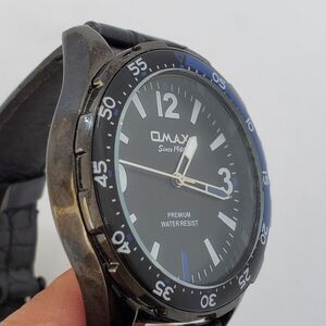 OMAX Men's Watch 45MM Black Dial Black Case Black Leather Bands New Battery