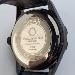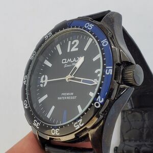 OMAX Men's Watch 45MM Black Dial Black Case Black Leather Bands New Battery.