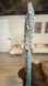 Grey and green printed crepe (97% Polyester, 3% Spandex). Hourglass. Three-quarter sleeves. V-neckline. Hidden center back zipper with hook-and-eye closure. 52" from shoulder to hemline. Imported.