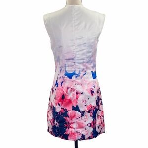 OMBRE White Floral Sleeveless Mini Sheath Dress