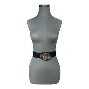 omega belt, womens stretch belt, black elastic belt, beaded buckle belt, m l belt, wide fashion belt, statement waist belt, boho belt, colorful buckle belt