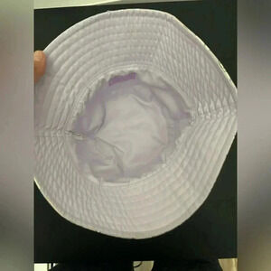 Featuring adorable unicorns and rainbows throughout, this bucket hat is designed in a holographic finish.