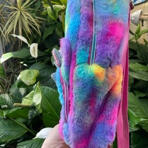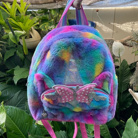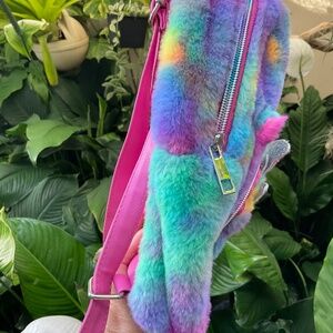 Miss Gwen’s OMG Accessories Adorable Small Colorful Jeweled Pearl Faux Fur Backpack