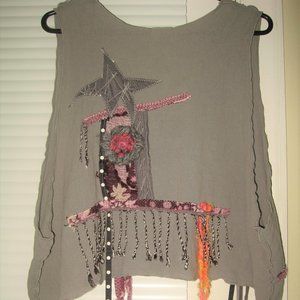 ❤️OMG OH MY GAUZE! GRAY SLEEVELESS COVER TOP Custom Boho Look Size 2