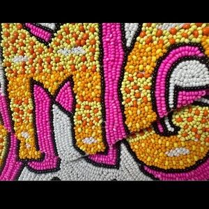 OMG! Pop Art style Beaded Clutch | neon colors | Hand Crafted | fun | kitschy