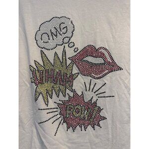 OMG Rhinestone Comic Book Pop Art White Graphic Tee