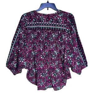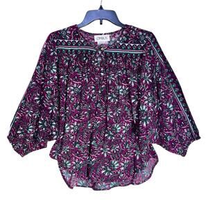 Charming OMIKA blouse by Anthropologie! Featuring a delightful floral pattern and a comfortable, boho-inspired design, this top is perfect for adding a touch of whimsy to any outfit.