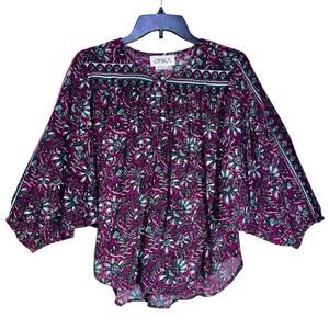 OMIKA Blouse M Floral Boho Dolman Sleeve Linen