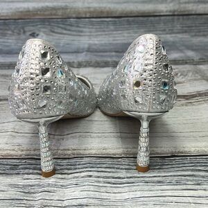 OMINE Women’s Pointed Toe Heels – Silver Rhinestone Embellished – Size 11