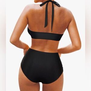 Material: The slimming black two piece swimsuit are made of polyester and spandex, lightweight soft, comfortable, full lined.