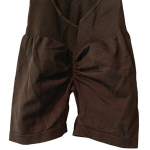 No Front Seam Yoga Jumpsuit with tummy control, ribbed seamless one piece jumpsuit, medium compression tummy control athletic jumpsuits with built in bra, slimming bodycon jumpsuit for women figure enhanced.