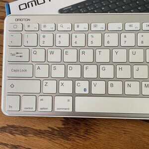 OMOTON Keyboard with Numeric, Ultra Slim Wireless Bluetooth Keyboard, Silver. Compatible with all models with systems iOS 9.1 or later. 2 AAA batteries last for 30-days of continuous use (new batteries needed). Very lightly used only a few times. Instruction manual is included. Clean, non-smoking home. Quick shipper!