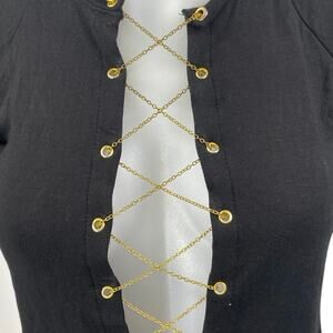 O-Mighty Black Lace Up Chain Strap Cutout Short Sleeve Cropped Tee T-shirt Top M