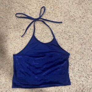 Royal blue velvet halter top from OMighty with a funny motivational tag inside! Measures about 13.5” across bust laid flat. Some stretch but not a ton. No size tag, I believe this is an XS or S. I’m a 34C, usually S-M on top and it’s a little tight around my ribs. No flaws. Sold out on website; Omighty crops retail around $50+.