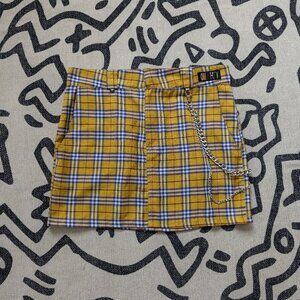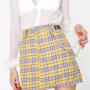 OMighty Clueless Yellow Plaid Mini Skirt Medium with Chain