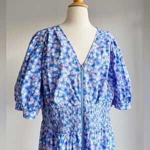ON 34th Periwinkle Printed Cotton Zip-Front Puff-Sleeve Dress 2X