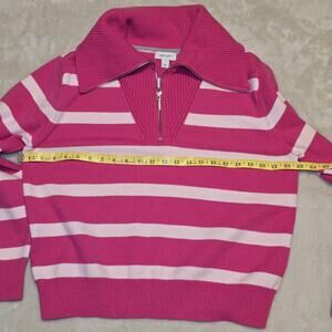 ON 34th Women’s Size L Pink Striped Half-Zip Sweater Pullover Long Sleeve