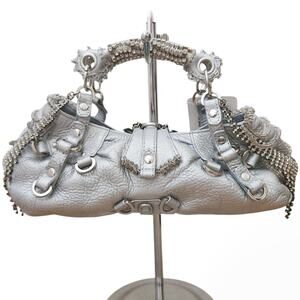 ON AURA TOUT VU Paris silver leather crystal beaded statement mini evening bag Gagaku