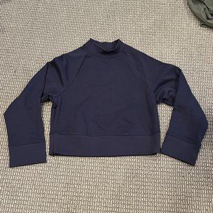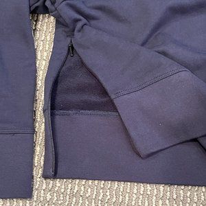 ON CLOUD Crew Neck Navy Sweatshirt Womens Size Small 100% Organic Cotton NWT Zipper on sides cropped Machine Washable