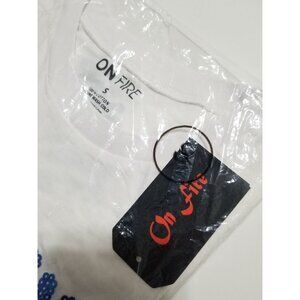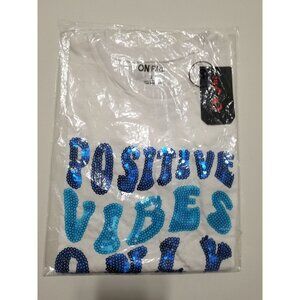 ON FIRE Positive Vibes Only Sequin Knot Front Crop Top In White - Size Small