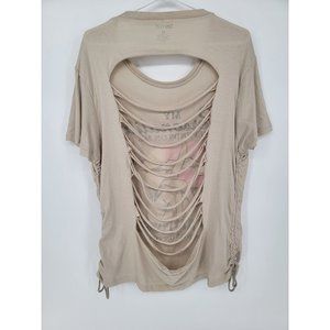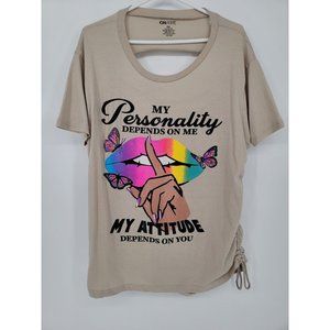 ON FIRE Size 2X Womens Top Graphic Tee Shirt Distressed Rouched