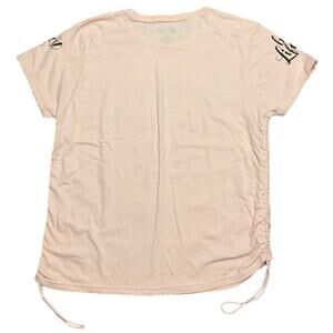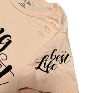 ON FIRE Women's Peach Graphic Cotton Top Living my best Life Side Ties Size XL