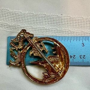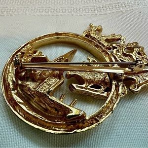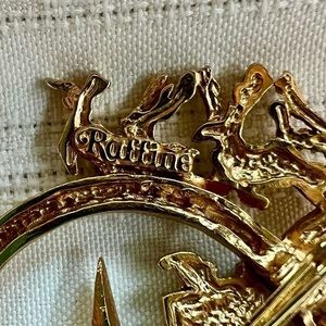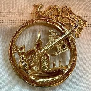 ON SALE Christmas Brooch Gold-tone Circle Santa Sleigh Reindeer Steeple EUC