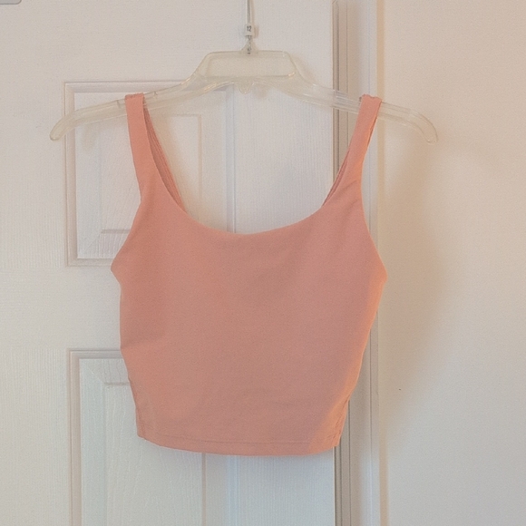 light peach colored cropped athletic top. built in bra with removable pads. worn but no damages will consider all offers!