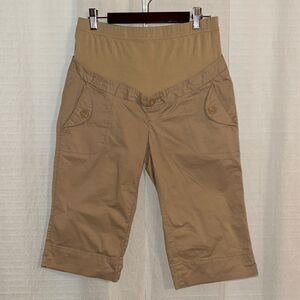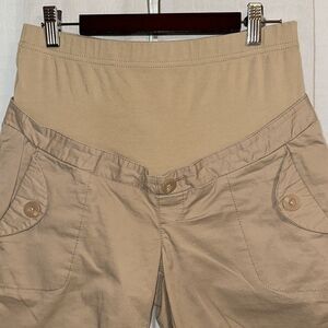 ON XS Full Panel Waist Tan Cotton Maternity Stretch Bermuda Shorts