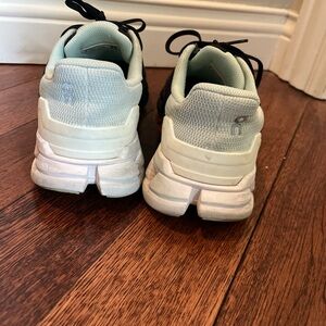 Women’s ON cloudflyer, size 8.5, decent condition, a bit dirty but still have life left (mint, white, and black)