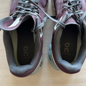 ON mulberry/mineral ONCLOUD women’s 7.5 running shoes.