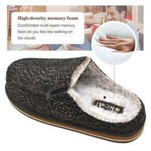 Mens Comfort slipper:These mens house slippers are made of cotton blend upper and clog style heel. It’s easily to slip on and take off for daily life.