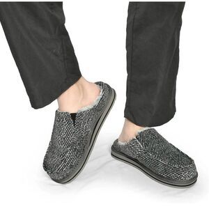 ✨ONCAI Mens Clog Slippers w Arch Support Stripe Faux Fur Cotton-Blend Slippers✨