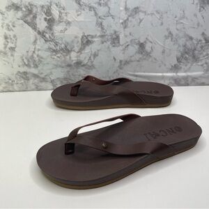 ONCAI Womens Flip Flops Comfortable Leather Strap Thong Sandal Brown Size 10