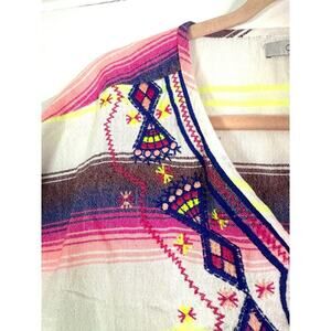 ONDADEMAR Embroidered Striped Tunic Cover-Up Top Loose Fit Swim Boho - Sz Small
