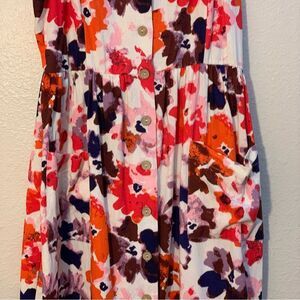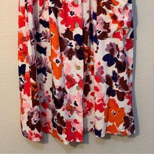 ONE CLOTHING Floral Linen Blend Sun Dress L Floral Women’s Button Up MIDI.