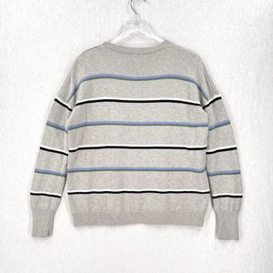 ONE GREY DAY Sweater Women Small Gray Crew Neck Oversized Cotton Pullover Stripe