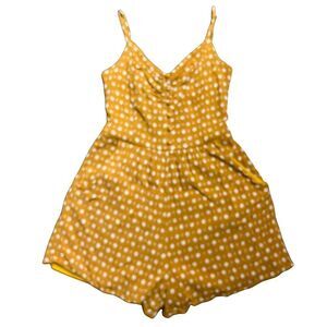 ONE Heart Clothing Gold & White Crinkle Rayon Gauze Button Front Shorts Romper