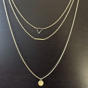 ••• NWT stunning goldtone bar necklace. Perfect as a gift or to keep for yourself! Gold plated alloy material. Minimalistic, dainty, hipster style. Triangle, bar, and coin. Boutique branded. •••