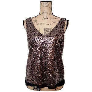 ONE LOVE CLOTHING Women's Regular Bronze Sequin Chiffon Dressy Tank Size Small