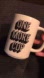 Isn’t it always just ONE MORE CUP that will fix everything?! 😉☕️ Cool retro, vintage look that evokes the 70s vibe. White with black/gray fancy block letting.