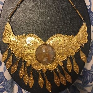 Beautifully handmade Indonesian ethnic silver necklace with gold plated and rare cream brown stone.