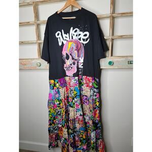 One of a Kind T-shirt Boho flowy patchwork dress ladies size 2X. This top is "Inspire" with great colorful Skull graphics paired with patchwork flowy skirt. This is a one of a kind piece.! This piece can be worn beautifully layered with long sleeve tee and leggings. this piece measures 27" pit to pit 100% Cotton and 58" in length. Super comfortable wear!