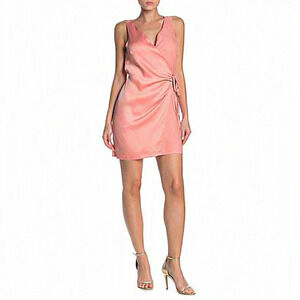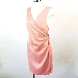 ONE ONE SIX Peach Pink Satin Surplice Dress L