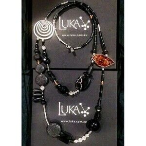 ONE Of A KIND Silver Amber Onyx Lava Statement Asymmetrical Necklace LUKA Design